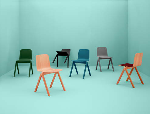 Ronan og Erwan Bouroullec har designet en ny kolleksjon for Hay til Københavns Universitet (KUA). Kolleksjonen inkluderer en trestol, en bar krakk og flere bord. Utgangspunktet for denne serien er et gammelt universitet stol, designet av arkitekt Bernt Pedersen Dette var en av nyhetene jeg fikk se da vi besøkte Hay Store på Strøget i forbindelse med bloggturen med VisitDenmark.