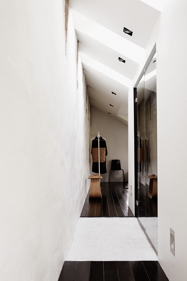 Arkitekt Andreas Martin-Löf har gitt denne leiligheten en unik blanding av smarte løsninger, overdådige materialer samtidig som han har klart opprettholde århundreskiftet sjarm. Leiligheten er over to plan og ligger et par steinkast fra Sveavegen. Jeg liker tyngden som det svarte gulvet gir og er helt forelsket i trappen som noen kanskje vil si har en litt stor fallhøyde. Men et gelender hadde ødelagt hele uttrykket spør du meg...